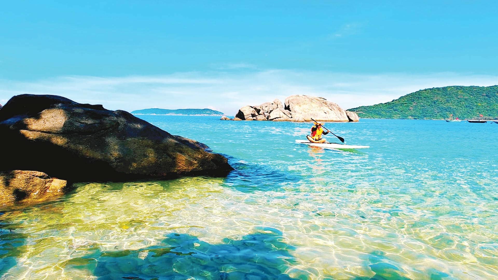 10:00 am: Canoe takes you to Hon Dai, Bai Xep (Coral Reef) to participate in the program of swimming and watching coral. You will be guided, equipped with life jackets, specialized glasses, and a snorkel to participate in this activity
